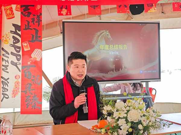 年终总结环节,亚建科技总经理李宁发表主题演讲,全面复盘公司2025年发展历程与阶段性成果,深入剖析行业发展趋势,并对2026年公司整体战略规划、市场布局作出深度展望,为新一年的发展指明方向、锚定目标。随后,技术部副总经理周山、技术部工程机械负责人白照阳先后登台,分别就各自分管领域的工作进行详细总结汇报,清晰展现了技术团队在技术攻关、产品研发、工程实践中的卓越表现与硬核实力,为企业高质量发展筑牢技术根基。
